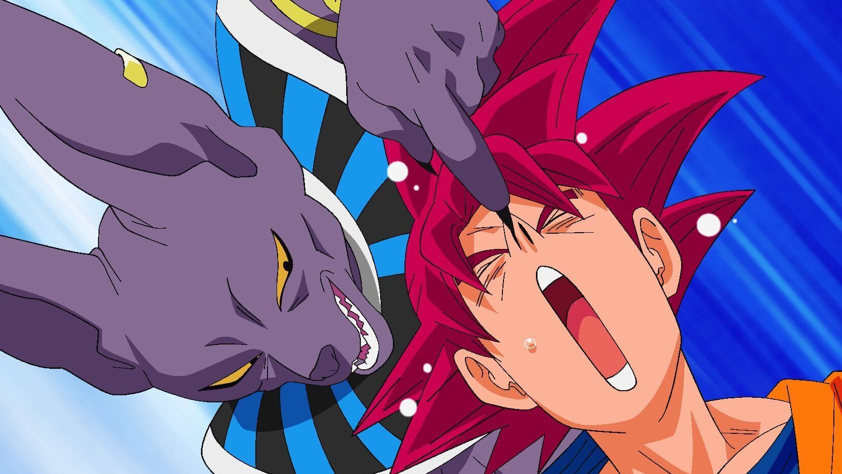 Der Kampf zwischen Goku als Super-Saiyajin-Gott und Beerus, dem Gott der Zerstörung, verlagert sich von der Erde in den nahen Weltraum. Goku gelingt es, alle noch so heftigen Angriffe Beerus' abzuwehren und seinerseits ordentlich auszuteilen. Aber seine Kräfte scheinen zu schwinden, als Beerus zum entscheidenden Schlag ausholt ...